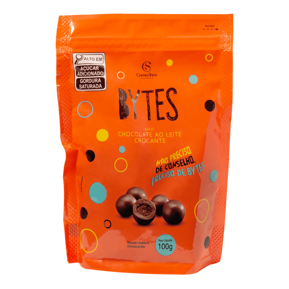 Drageado Bytes ao Leite Crocante: chocolate ao leite com um toque crocante por dentro. Perfeito para comer sozinho ou compartilhar e para deixar seu dia ainda mais gostoso!