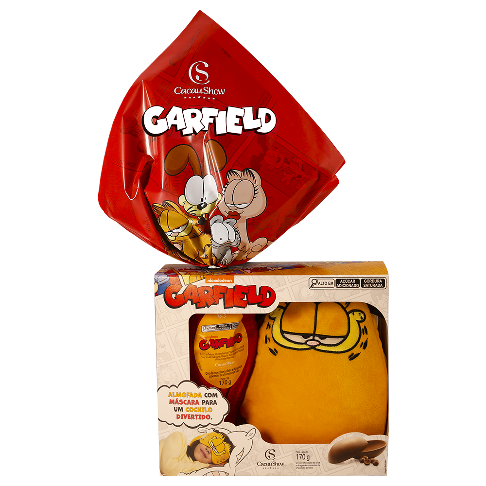O Ovo de Páscoa ao Leite Almofada com Tapa-Olho Garfield é a escolha ideal para quem quer unir sabor e fofura nesta Páscoa! Feito com chocolate ao leite, acompanhando de drageados crocantes de chocolate ao leite, este ovo vem acompanhado de uma almofada com tapa-olho do Garfield, perfeita para aquele descanso merecido no carro ou em qualquer lugar. Um presente delicioso e especial para todas as idades!