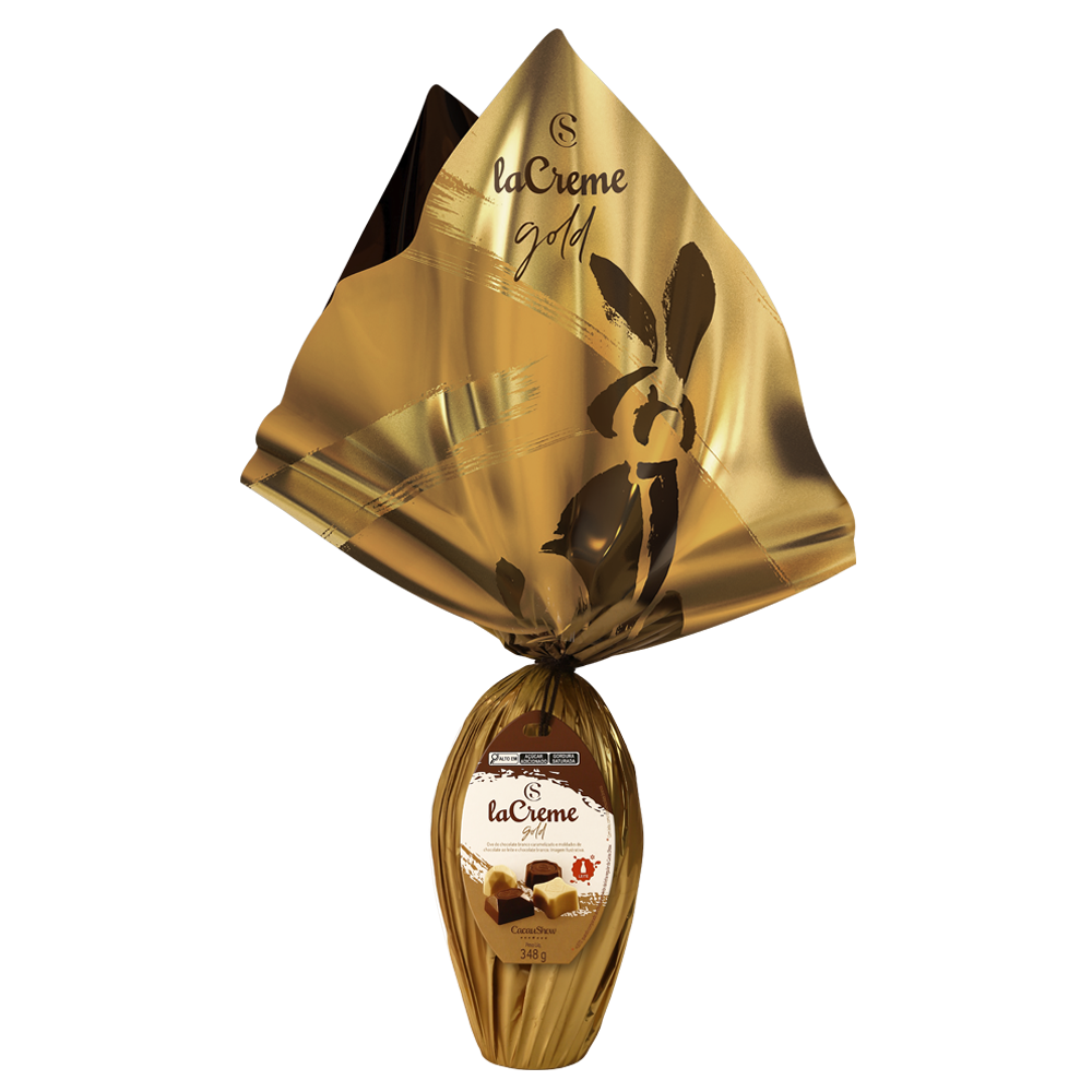 • Ovo de chocolate branco caramelizado da linha laCreme Gold.