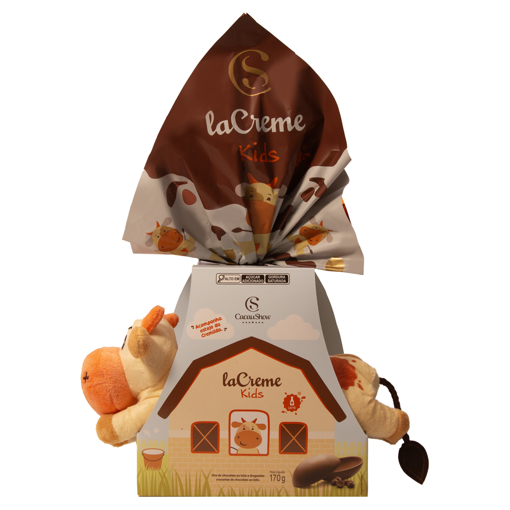 O Ovo de Páscoa laCreme Kids ao Leite com Estojo é a escolha perfeita para encantar as crianças nesta Páscoa! Feito com chocolate ao leite e acompanhado de drageados crocantes de chocolate ao leite, este ovo traz uma experiência deliciosa e divertida. E para tornar o presente ainda mais especial, ele acompanha um estojo com a adorada mascote Cremilda, uma das figuras mais queridas da Cacau Show.