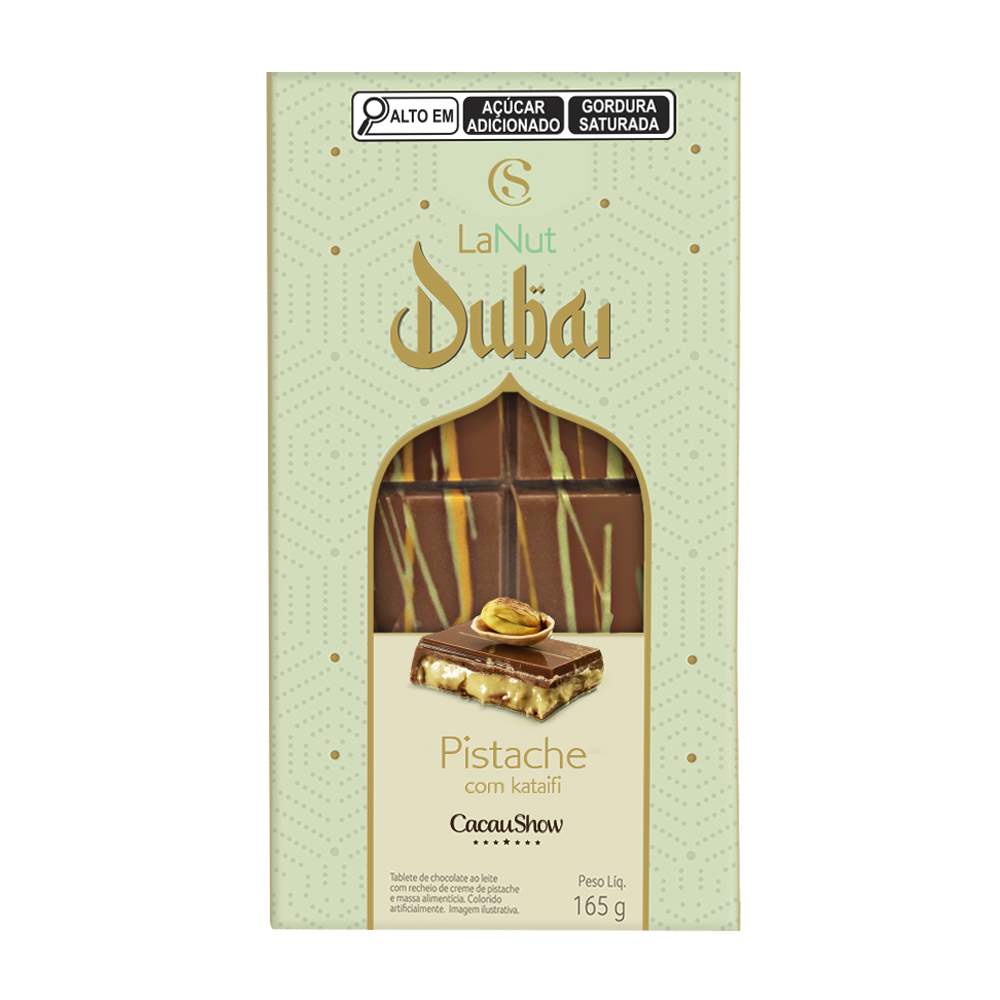 Prepare-se para uma experiência exótica e indulgente com o Tablete LaNut Pistache Dubai. Um delicioso tablete de chocolate ao leite, recheado com um creme aveludado de pistache e finalizado com a textura única do kataifi, trazendo sofisticação e sabor para cada pedaço.