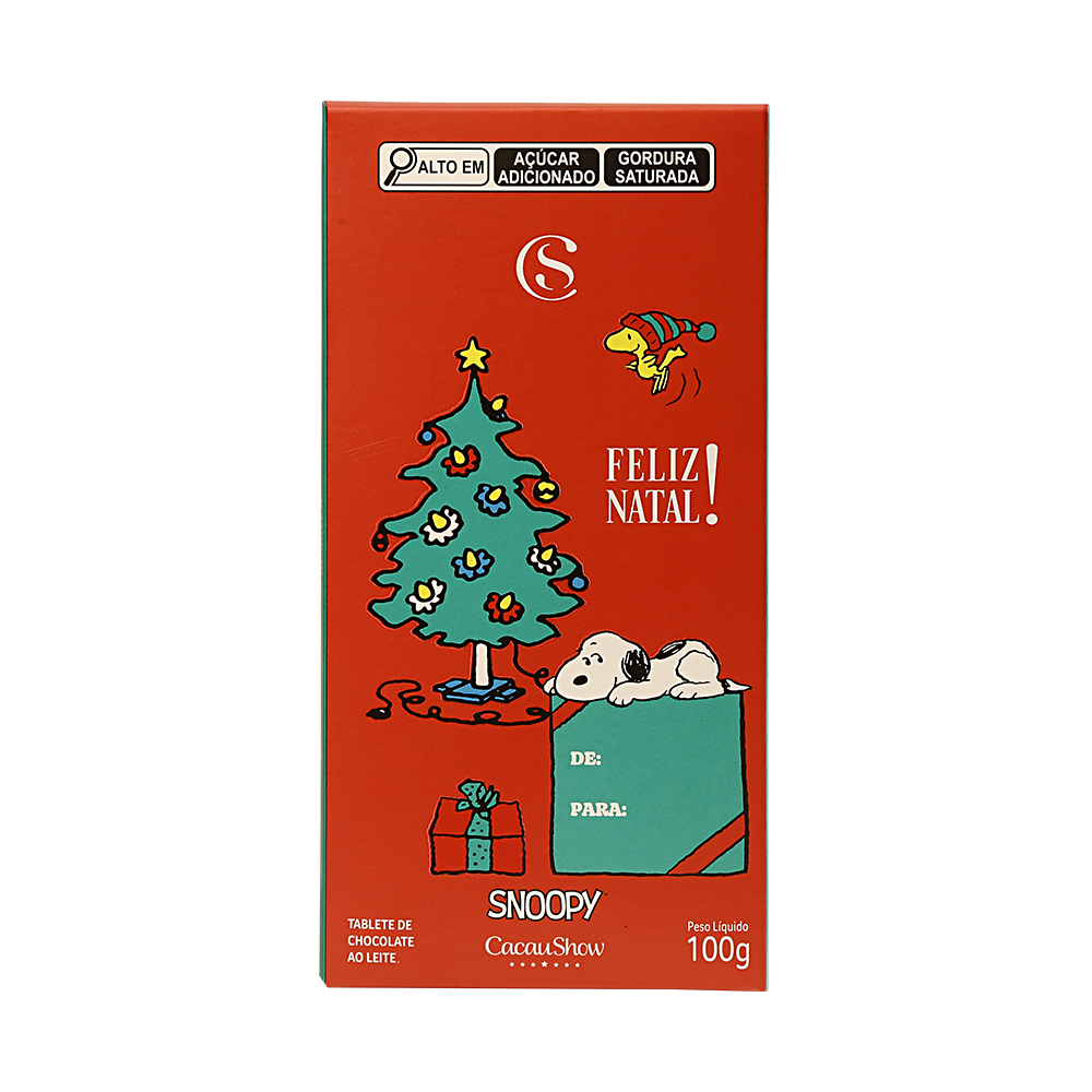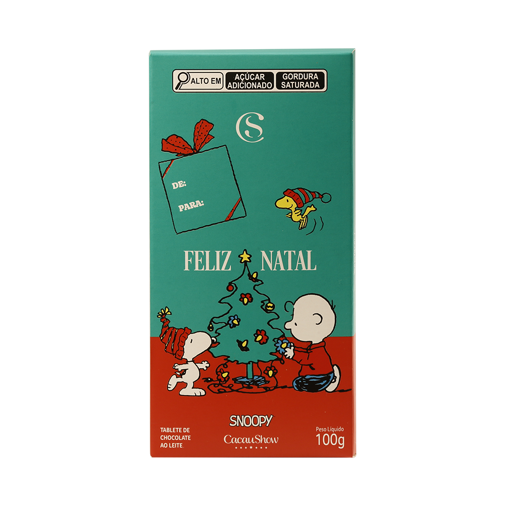 Um toque de nostalgia com o Tablete Snoopy ao Leite da Cacau Show que combina a suavidade do chocolate ao leite com a alegria do personagem icônico Snoopy. Em uma embalagem com artes divertidas e natalinas da turma do Snoopy, este tablete é a escolha perfeita para presentear ou se deliciar com uma dose de nostalgia.